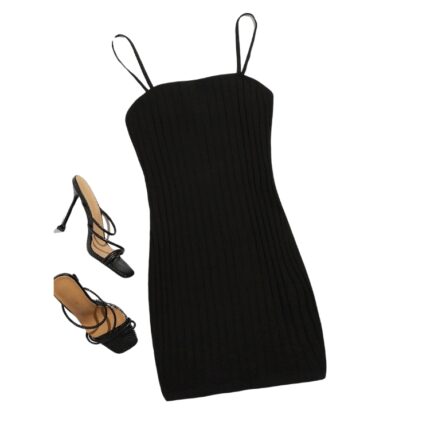 Vestido Negro Mini Bodycon Ajustado Con Tirantes Acanalados
