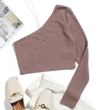 Top de Un Hombro Manga Larga en Tejido Canalé