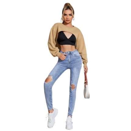 Pullover Súper Corto Hombros Caídos