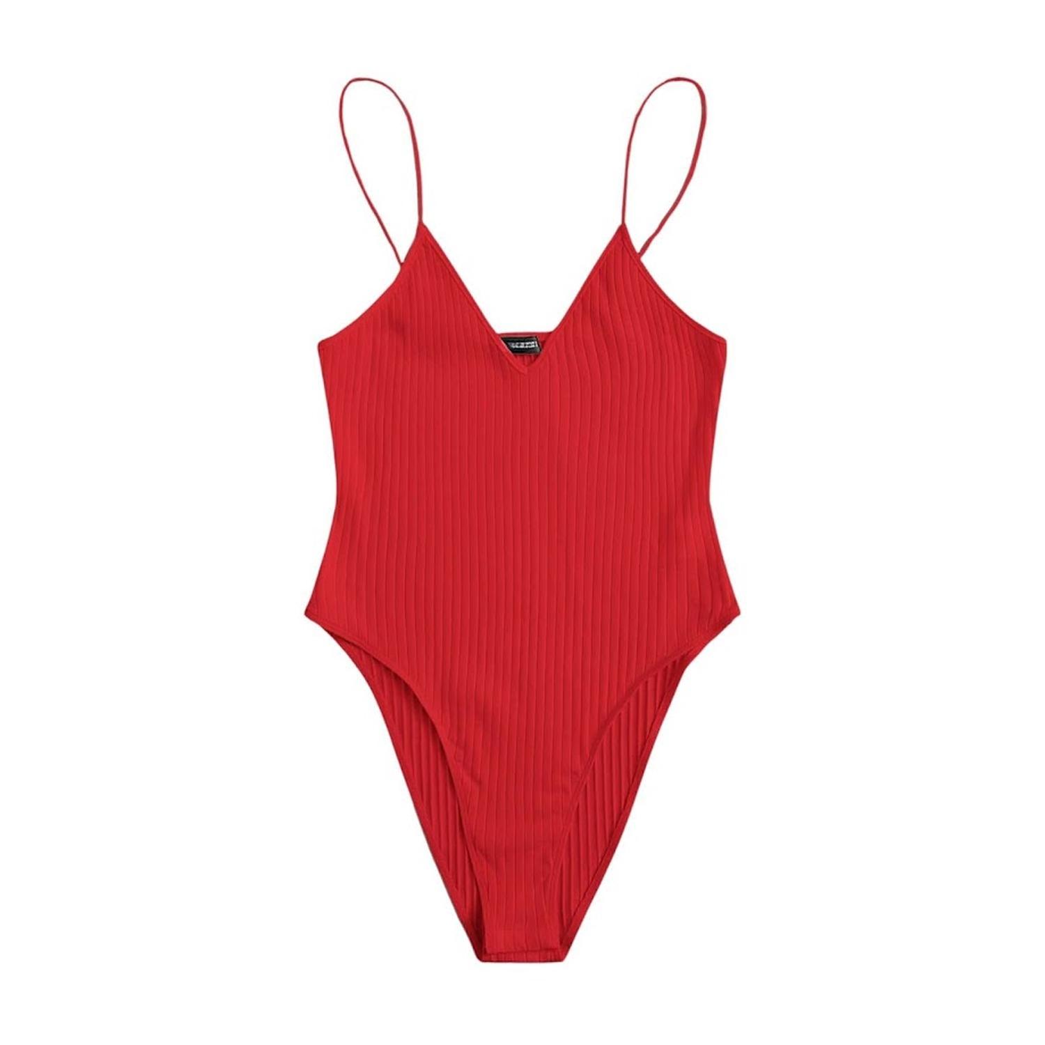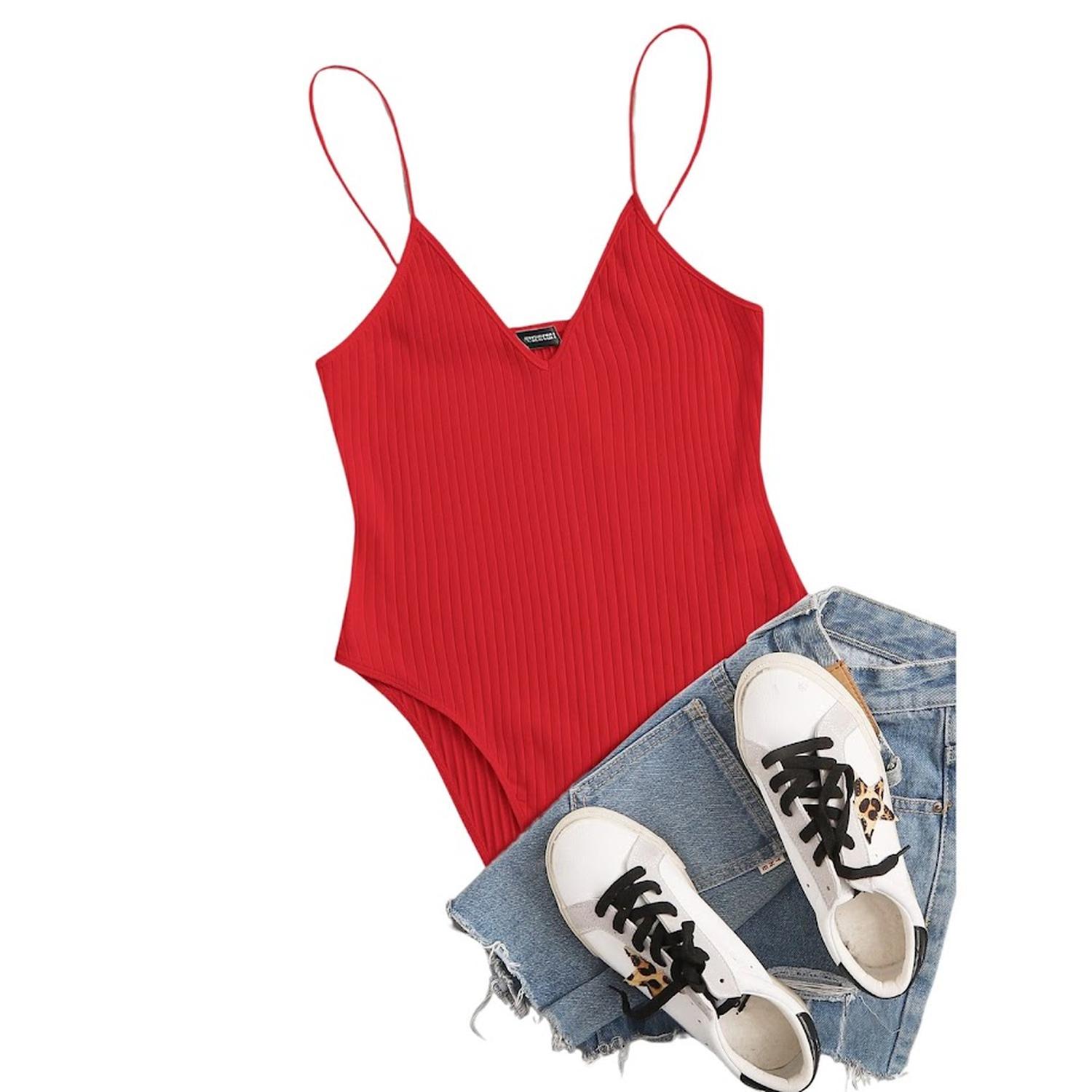Este body rojo de tirantes finos combina comodidad y estilo en una prenda versátil para uso diario o salidas casuales.