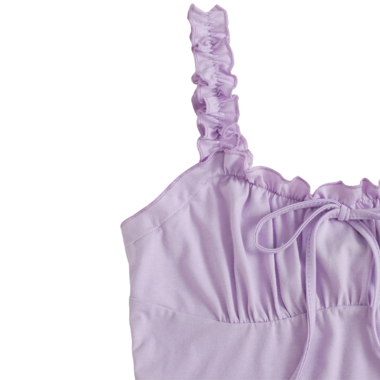 Detalles: Volante fruncido con nudo decorativo, acentuando la figura y creando un toque femenino y chic.