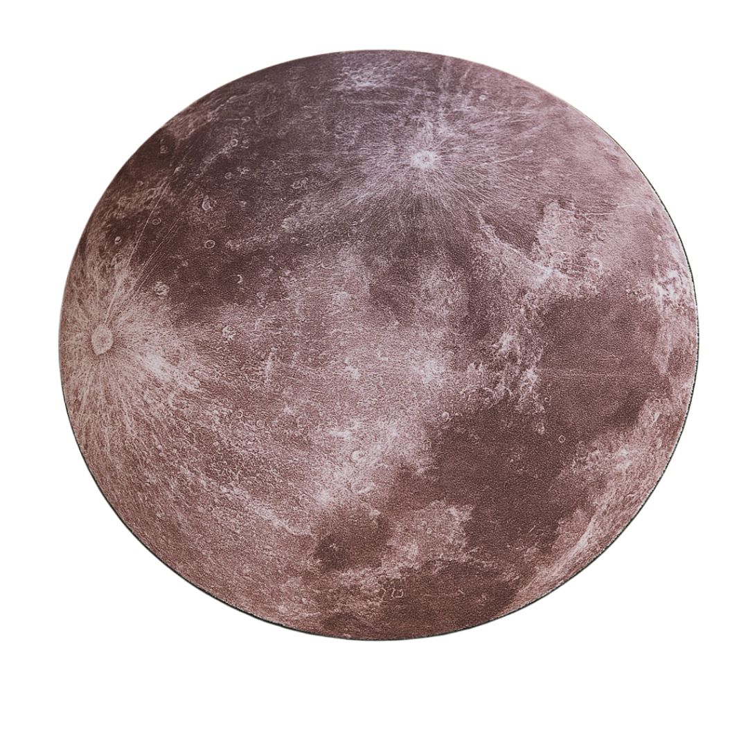 Pad mouse con diseño lunar realista. Redondo, base antideslizante y superficie suave para uso diario u oficina.