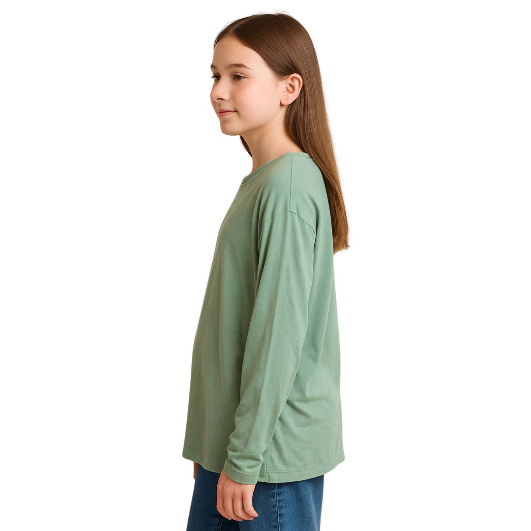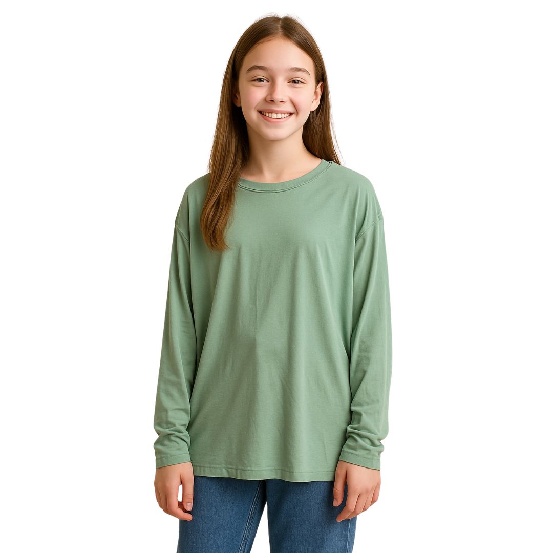 Esta polera oversized de manga larga en color verde menta es la prenda ideal para quienes valoran la comodidad sin perder el estilo. Confeccionada en una tela suave y liviana, tiene un calce holgado que se adapta al cuerpo con soltura. Su diseño versátil permite combinarla fácilmente con jeans, leggings o shorts para un look casual y relajado. Perfecta para días templados o como prenda base para capas en otoño.