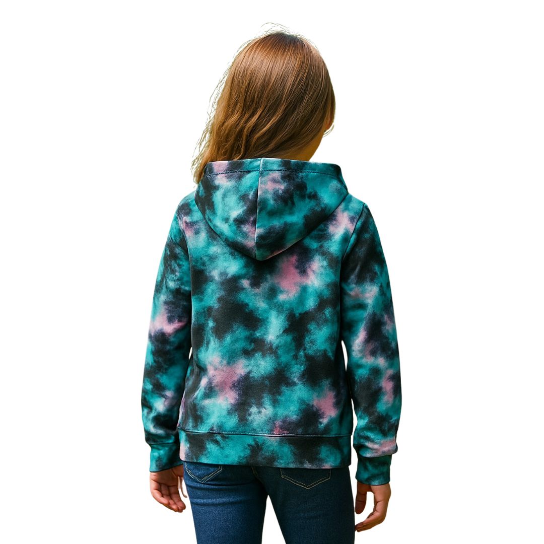 Sudadera con capucha para niña, estampado de corazones y teñido anudado multicolor. Estilo casual. Disponible en talla:..