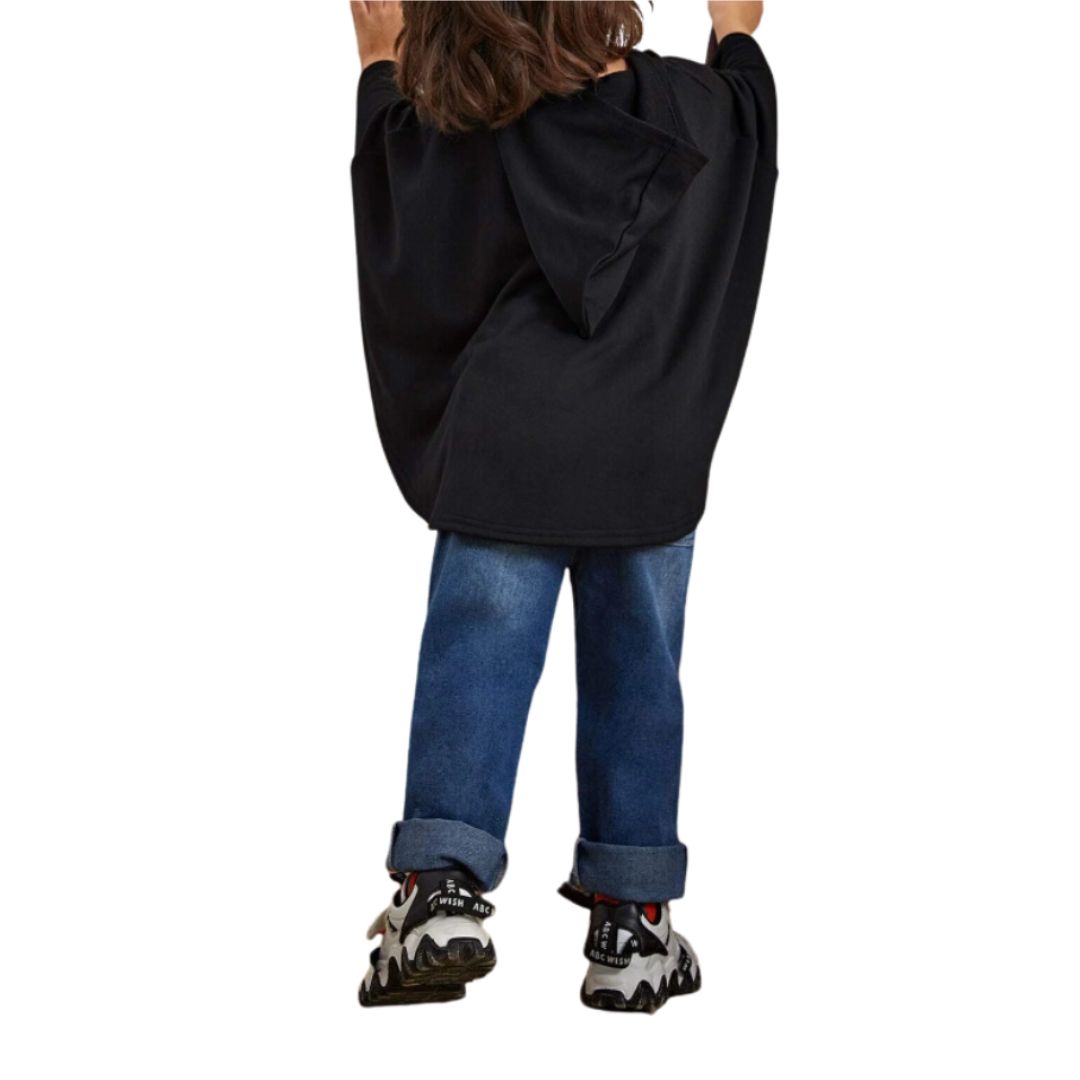 Divertida sudadera negra manga larga para niño, temática Halloween con calabaza. Corte murciélago, poliéster. Color Negro, Talla 6-8 AÑOS.