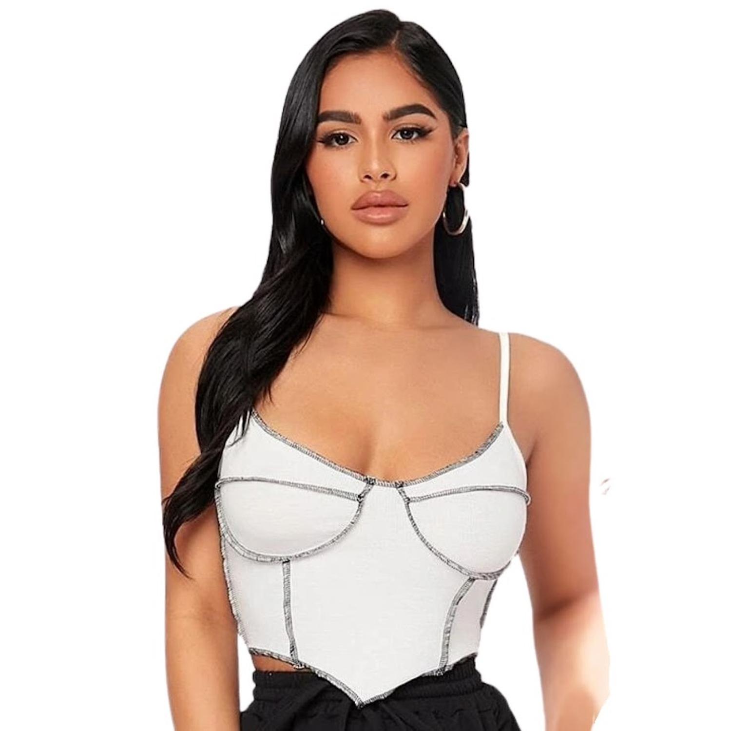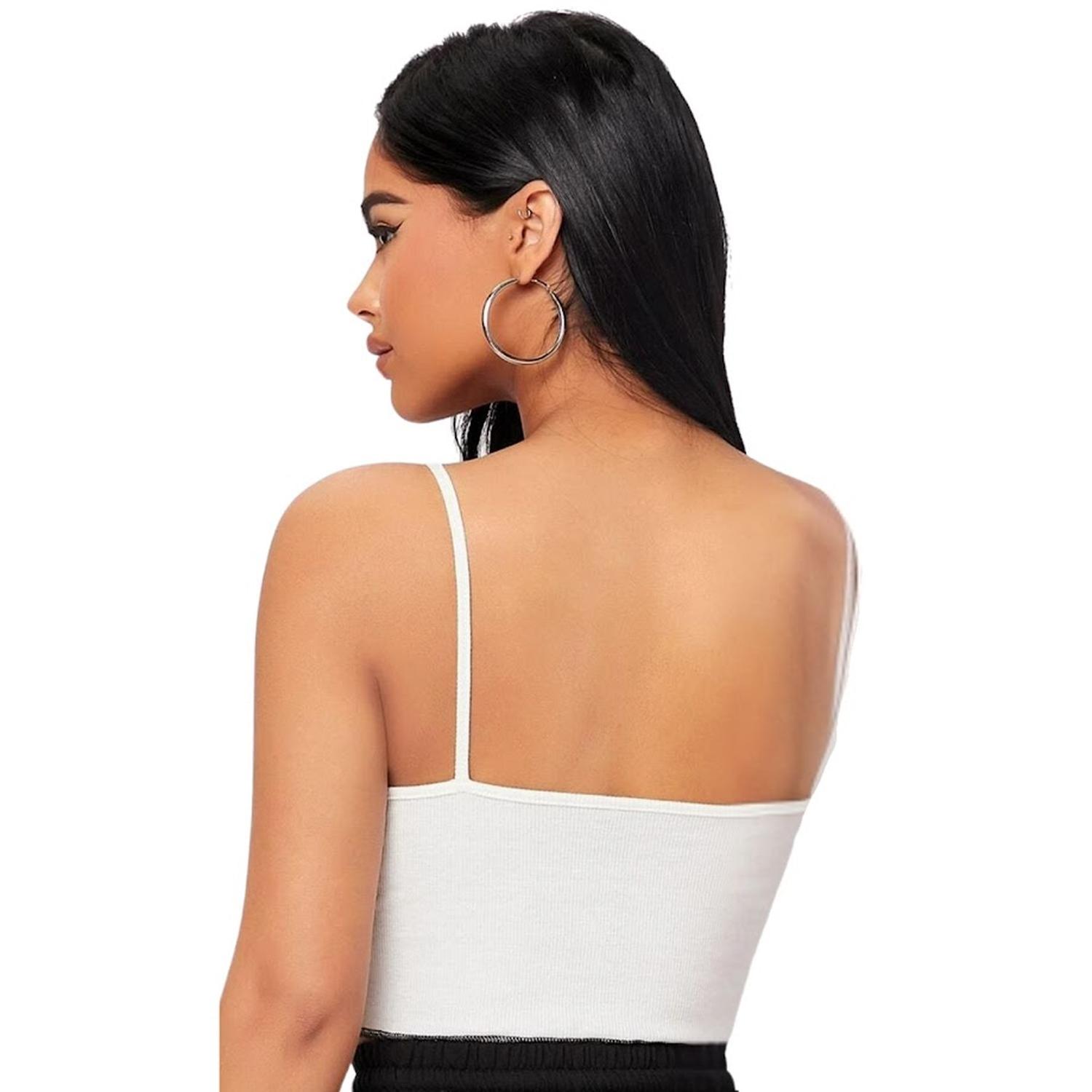 Luce fresca y moderna con este top estilo crop blanco y negro, diseñado con un corte asimétrico que resalta la figura y costuras contrastantes que le dan un toque único. Confeccionado en tela acanalada de textura suave, es ideal para outfits casuales. Sus tirantes finos y escote al aire realzan el diseño, mientras que el ajuste elástico ligero ofrece comodidad total. Perfecto para combinar con jeans o faldas de talle alto. Una prenda versátil para resaltar tu estilo.