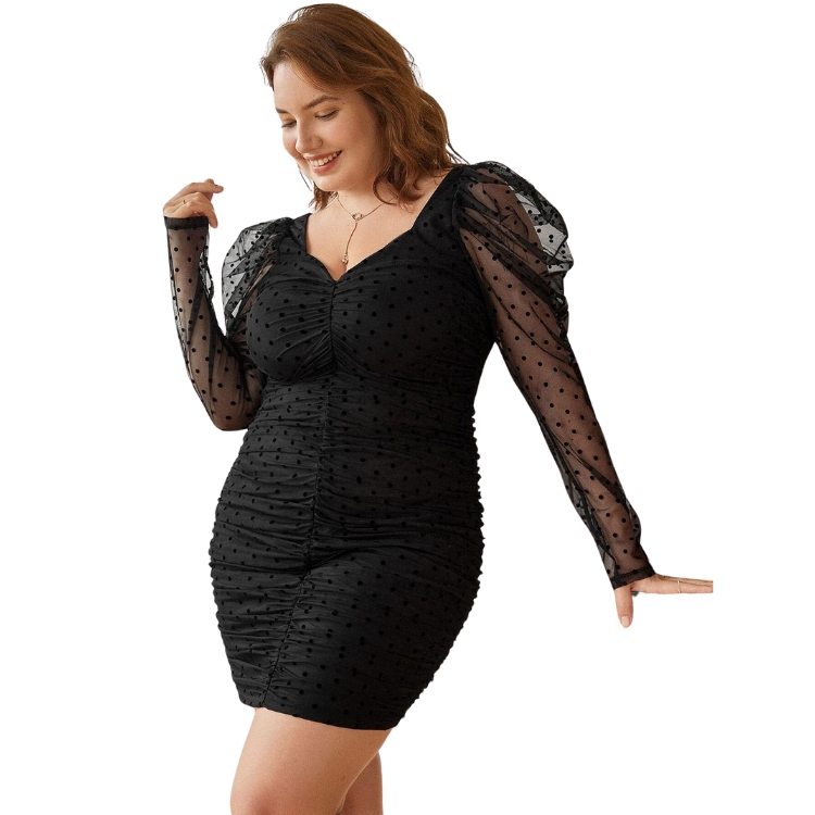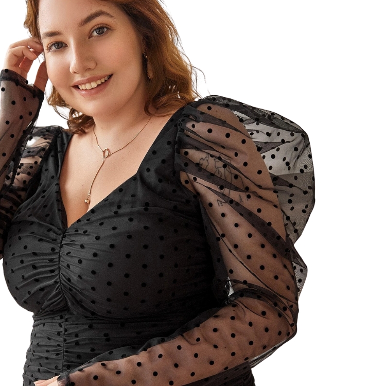 Este elegante vestido de fiesta en color negro es la elección perfecta para una ocasión especial. Con un diseño ajustado y un hermoso escote en forma de corazón, este vestido destaca por sus mangas abullonadas y el fruncido en la parte delantera, que aporta un toque sofisticado y único.