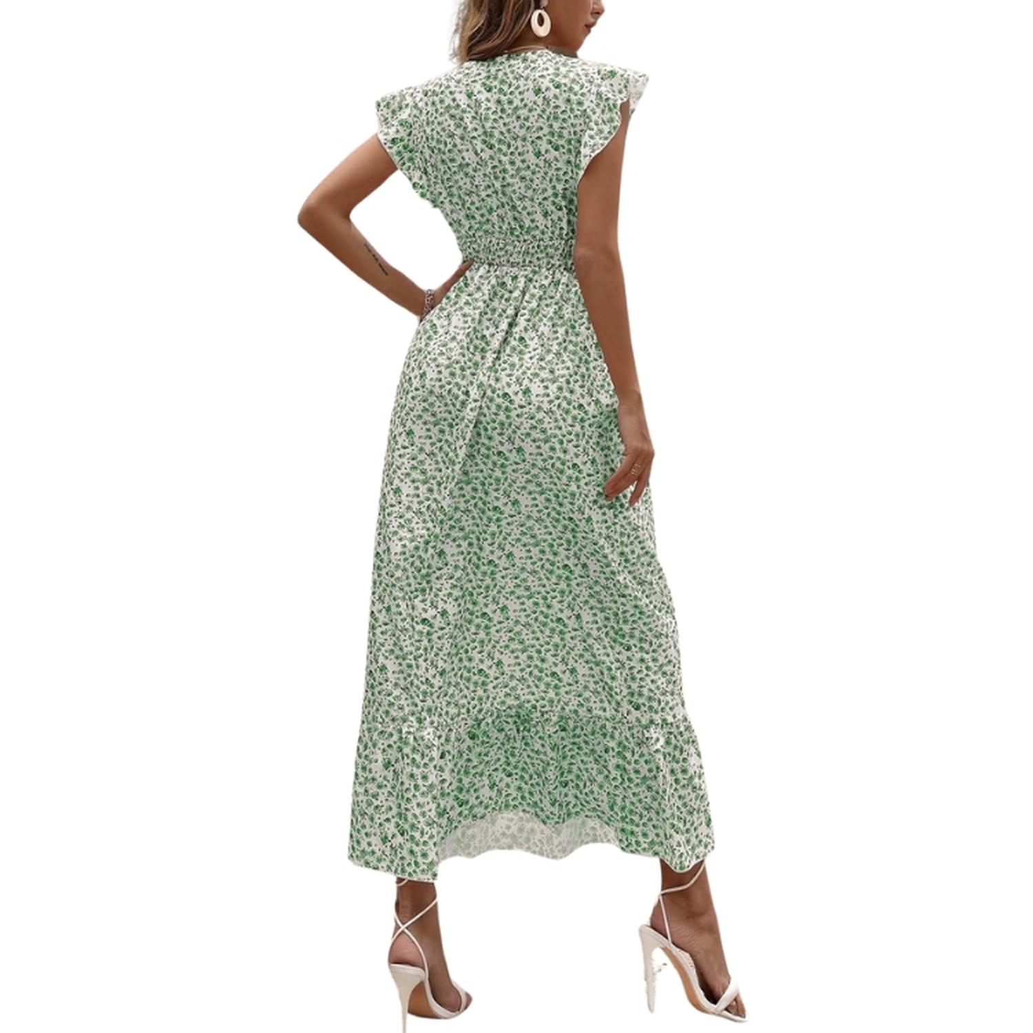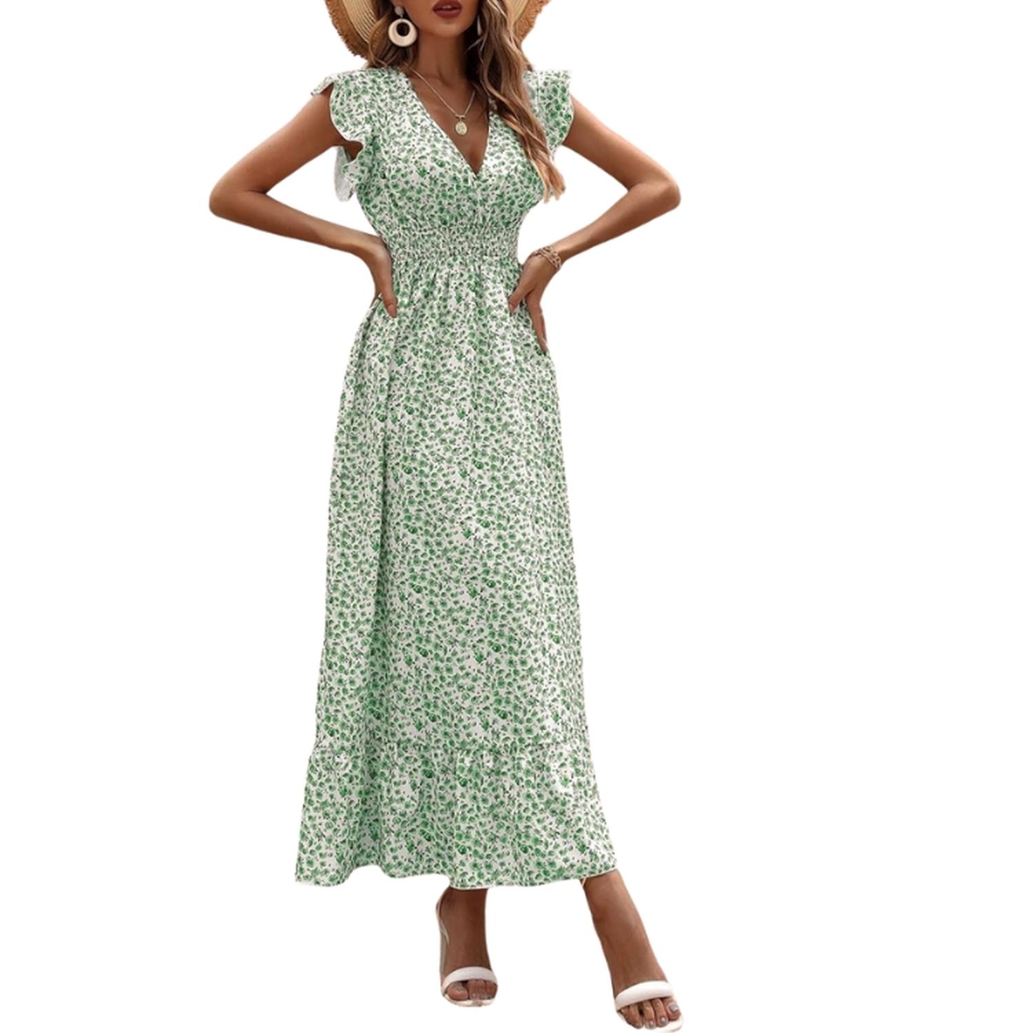 Vestido Largo Bohemio de Verano con Estampado Floral y Volantes